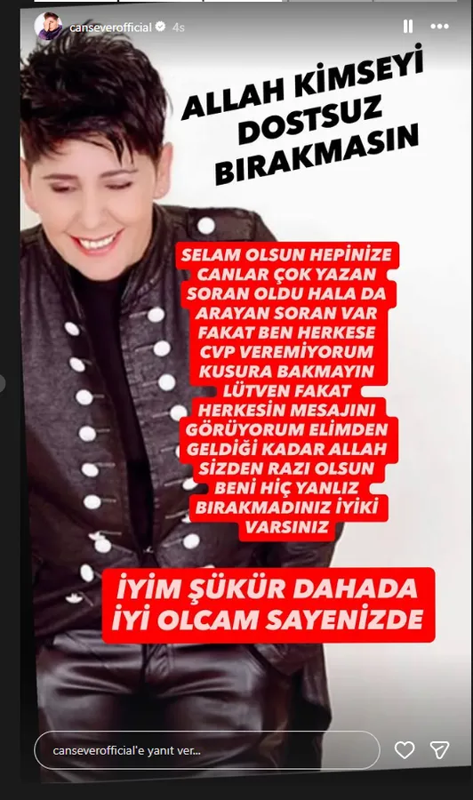 Cansever, son paylaşımında kendisine gönderilen destek mesajlarına da değindi. Herkese tek tek cevap veremediğini belirten sanatçı, duyduğu memnuniyeti şu ifadelerle dile getirdi: