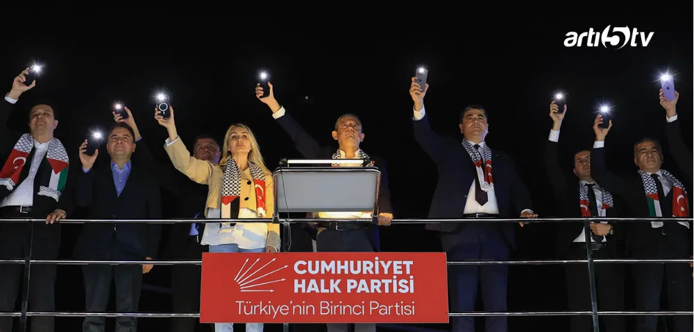 İstanbul Eyüpsultan’da gerçekleşen mitinge on binlerce kişi katılırken, meydan Türk bayrakları ve Filistin bayraklarıyla donatıldı. CHP Genel Başkanı Özgür Özel, kürsüden yaptığı konuşmada Cumhurbaşkanı Recep Tayyip Erdoğan’a ve ABD yönetimine sert eleştiriler yöneltti.