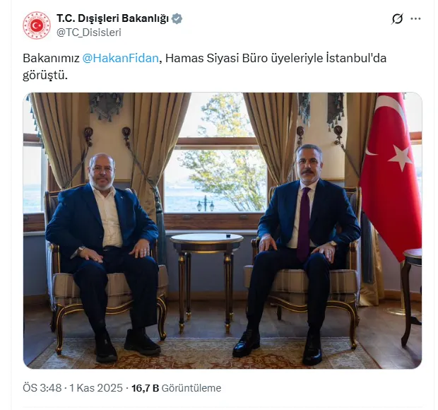 Dışişleri Bakanı Hakan Fidan, İstanbul’da Hamas Siyasi Büro üyeleriyle önemli bir diplomatik temas gerçekleştirdi.