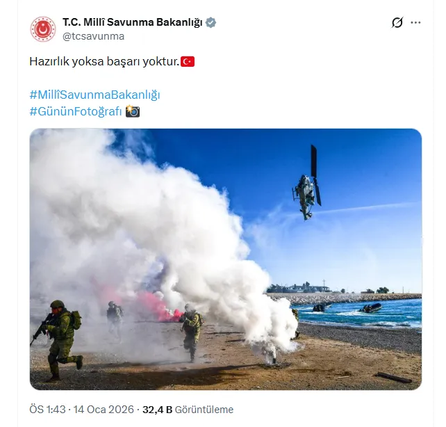 Paylaşımda kullanılan görüntülerde; denizde, havada ve karada görev yapan Türk Silahlı Kuvvetleri personelinin, her türlü senaryoya karşı tam teçhizat ve yüksek disiplinle hazır olduğu net biçimde görülüyor.